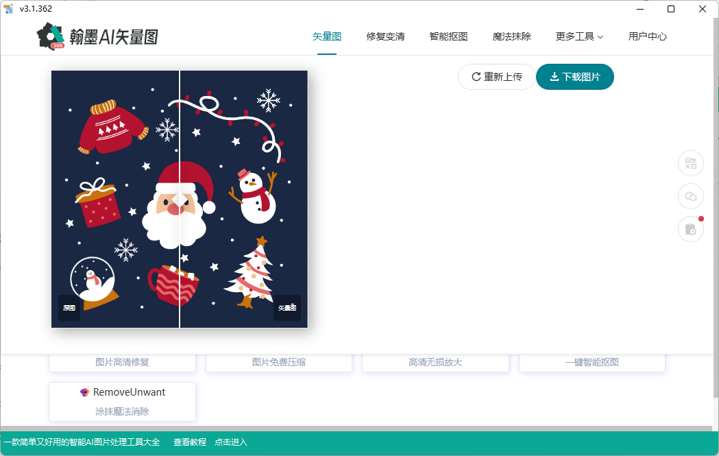 如何把jpg或者png圖片變成矢量圖格式,傳統方法就是使用Adobe Illustrator軟件進行臨摹處理,一方面需要軟件以及技術的支持,同時復雜度較高的圖像在細節上面可能會比較容易丟失。這種情況下推薦使用翰墨AI矢量圖轉換器在線工具,只需要將圖片上傳即可借助Ai人工智能技術自動識別生成轉換矢量圖格式,大大減少出錯概率確保與原構圖細節完全不變,適合用于網頁制作、廣告印刷等要求精細化場景。